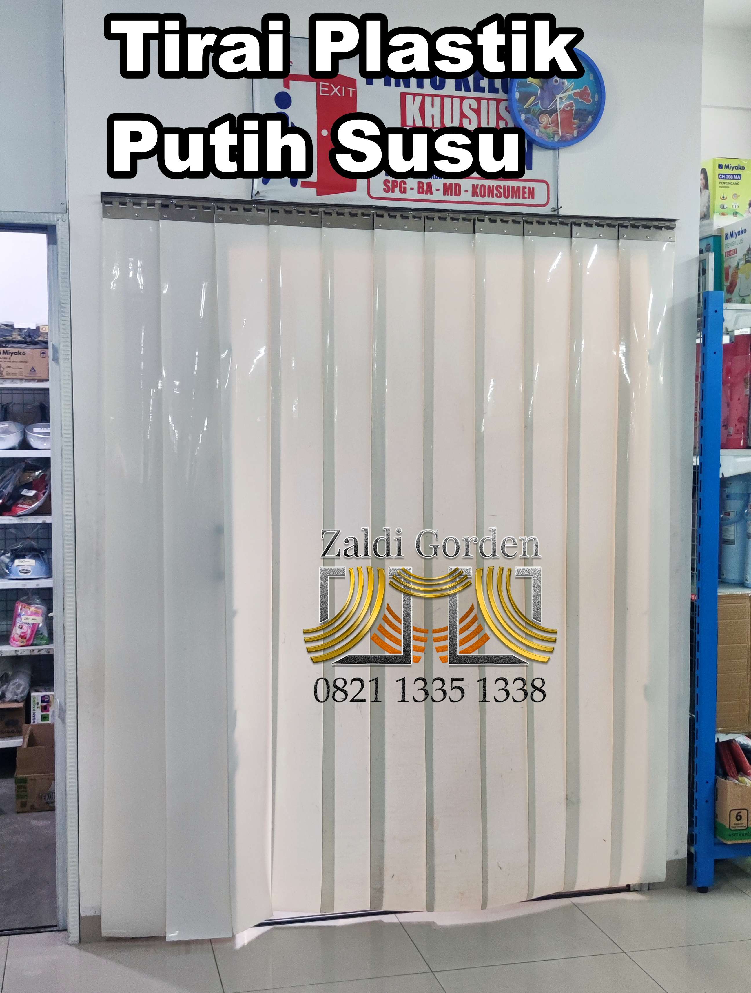 Untuk pemesanan dan konsultasi lebih lanjut mengenai PVC strip curtain putih susu atau jenis tirai lainnya, hubungi Zaldi Gorden di 0821 1335 1338 / 0821 3890 3060. Kami siap membantu Anda menemukan solusi terbaik bagi kebutuhan industri dan bisnis Anda.